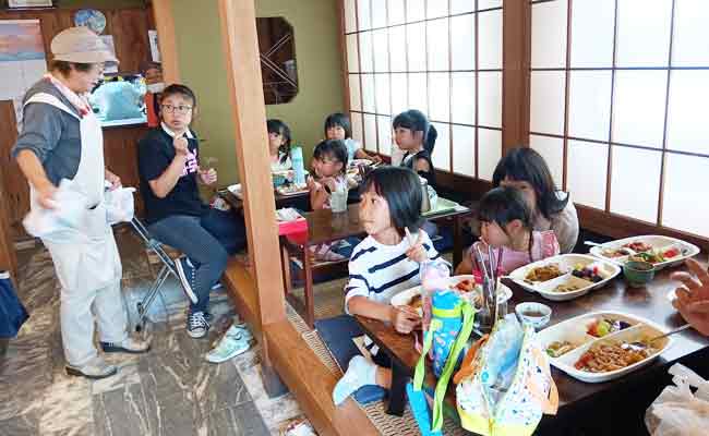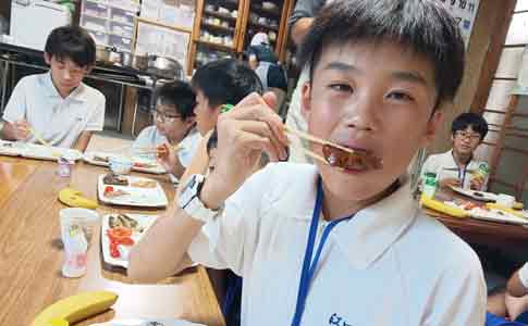 古池食堂 令和5年10月12日(木) 今日のメニュー さつまいもご飯 (トッピングのおかか昆布と竹の子煮はコープから頂きました) カボチャのそぼろ煮そうめんサラダ (コープから頂いたカニかまを入れてカニ風味にしました) 茄子とピーマンの田楽味噌添え (新鮮な野菜は地元の方から頂ました) フルーツ (柿 栗 バナナ メロン) デザート ・プリン (コープから頂きました) ・たい焼き(たつののたい焼き屋さんから色々な味のたい焼きを頂いて お互いに味当てをして楽しんでいました) お菓子 (グミ ラムネは春日井製菓から頂きました) 秋の食材を沢山使って、目や舌で季節を感じてもらいました。 さつまいもご飯美味しいね」とか「栗ってどうやってむくの?」とか・・・ 6年生は修学旅行の話題で盛り上がりました。 「おばちゃん、修学旅行に行くんや!」「月曜日からいくんやろ?」 「おばちゃんは何でも知っとんやなァ~」「清水寺に行ったら蝉がおるから、よく見たり聞いたりしてきてね。」 「わかった!」「気をつけて、楽しい旅行にしておいでね。」 「うん うん!」とうなづいて帰っていきました。 |