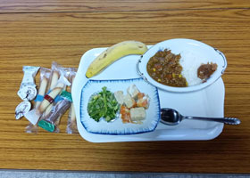 | 令和5年10月26日(木) 古池食堂 今日のメニューは、すじ肉入りカレー 支援でたくさんの柿を頂き、バナナと一緒に食事のデザートでみんなでいただきました。 とっても美味しかったです、ボランティアのおじさん、おばさんありがとう。また来るね楽しみに待っていてください。 |