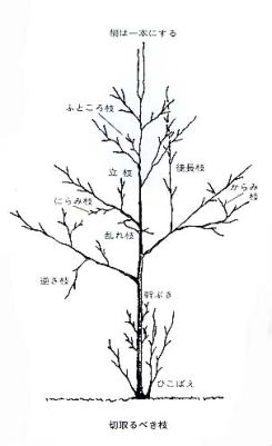 植木・庭木の整姿時期 整姿の時期は、大きく分けると12~3月の庭木の休眠期中に行なう冬期剪定と、 4~5月に行なう春季剪定、6~8月の庭木の生育中に行なう夏期剪定、 9~11月に行なう秋季剪定などがあります。 数多い庭木の中には、この中間の時期に剪定するものもあります。 1.冬季剪定(12~3月の休眠期中に行なう整姿) 主に針葉樹や落葉広葉樹の整姿の適時です。 この時期ですと樹形を作る為に主枝を切り戻したりしても庭木は痛みませんし、 落葉樹では葉がない時期ですから、枝の混みすぎた所や、 乱れた枝ぶりなどが良くわかって整姿しやすく 病害虫による被害枝も見分けがついて作業が容易です。 2.春季剪定(4~5月にかけて行なう整姿) 常緑広葉樹の落葉期にあたり、カシ・モチノキなどの 枝の間引きや切り戻しを行ないます。 ツバキ・ツツジなど、春に花を咲かせた庭木の開花枝を切り取ったりして 樹形を整える作業を行ないます。 3.夏季剪定(6~8月にかけて行なう整姿) この時期になると庭木は枝や葉を思う存分に広げて、自由奔放な姿になってしまいます。 込みすぎた枝や徒長枝を除いて樹冠内への日当たりや風通しをよくしたりしますが、 あまり強い枝ぬきをしますと、光合成によって成長のための 養分を造らなければならない枝や 葉を切ることに成り、木の勢いを弱めることになりますから注意が必要です。 4.秋季剪定(9~11月にかけて行なう整姿) 常緑広葉樹の整姿の適期です。 一般的な整姿法 ![]() 庭木の整姿法は庭木の種類によってそれぞれに適した方法がありますが、 ココに示した図ではまずどの庭木にも利用できる一般的な整姿法です。 ・ひこばえ:樹木の根元に近いほう芽した小枝であって、 そのままにしておくと樹勢を衰弱させるので必要ありません。 ・幹ぶき:胴吹きともいい、幹の途中からほう芽している枝ですので必要ありません。 ・徒長枝:とび枝ともいいます、伸長が盛んで真上を向いた枝で太い枝から出る場合が多く、 樹形を乱しますが場合によっては 主枝の更新に利用することが出来ます。 ・逆さ枝:樹形を整える為に剪定する枝であって、枝は上に向いて伸びていくのが普通ですが、 中には下方に向かって伸びることがあります。このような枝を逆さ枝といいます。 ・からみ枝:他の枝に接触して、からんでいるようになっている枝です。 枝と枝とが風などによって擦れて樹皮が剥けたりしますので必要ありません。 ・ふところ枝:幹の中心に向かって内側に伸びた小枝で、樹形を整えるのに必要はありません。 ・乱れ枝:主要な枝に対して交差したり乱れたりしている枝で、見た目にも不自然です。 ・その他:健全な枝であっても、樹形を整えるうえに不必要なものは剪定します。 庭木の剪定・植木の手入れ・庭の手入れの実例 |