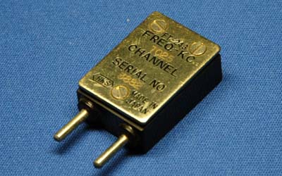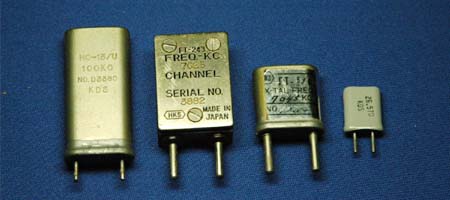 | FT243型(・・・だったと思いますが・・・?)私がアマチュア無線に興味を持った昭和40年代では、この水晶片を磨き直して周波数微調整できなきゃ一人前じゃないと言われてましたが・・・。 | |