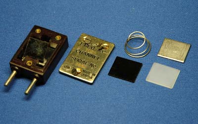 上蓋を開けたところ。 スプリングで極板を押さえています。 |