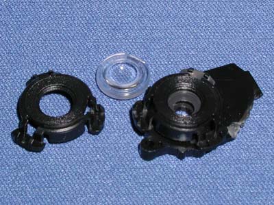 同じく、レンズ付きフィルムのファインダー。 前凹レンズ×1、 接目部凸レンズ×1の逆ガリレオ型 (何かに使えないか・・・検討中。) |