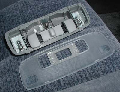 愛車のルームランプ。 夜、暗いとSWの場所が判らず、手探りで点灯させるのが不便なので表示灯を付けてみました。 (常時点灯なので夜しか見えない程度の輝度) 1.ループランプは太めのマイナスドライバーで簡単に外れます・・・ |