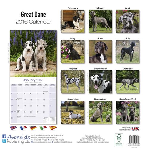 | 2016年[PetPrints]グレートデーンヨーロッパカレンダーの画像 | |
