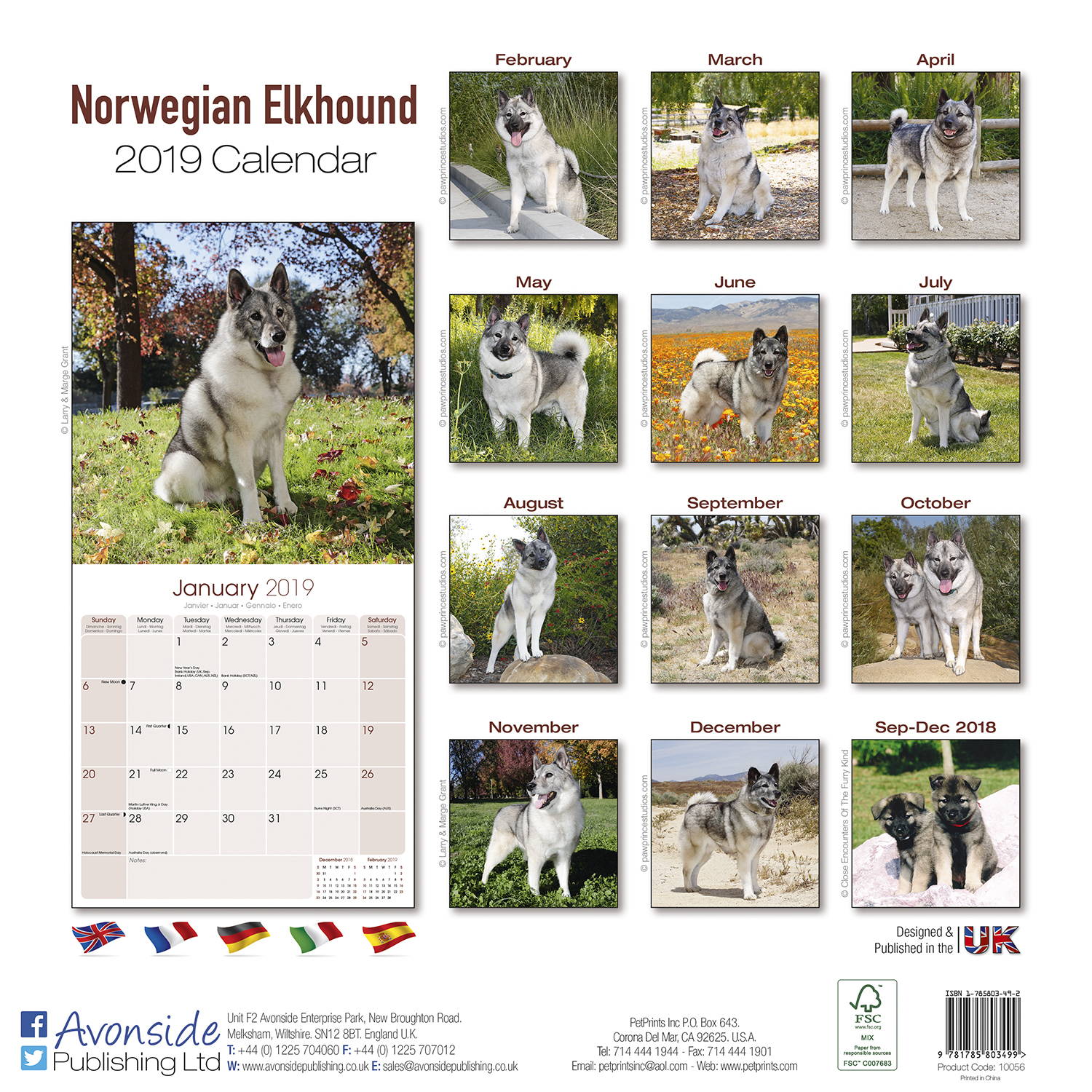 | 2019年[PetPrints]ノルウェジアンエルクハウンドカレンダーの画像 | |