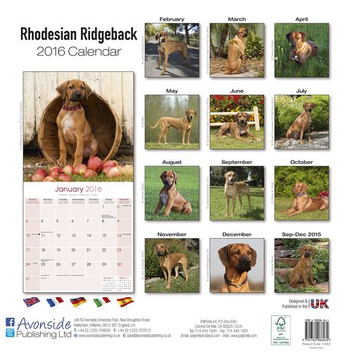 | 2016年[PetPrints]ローデシアンリッジバックカレンダーの画像 | |
