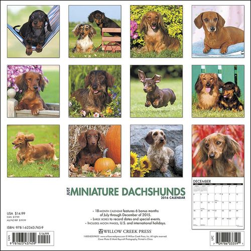| 2016年[WillowCreek]ダックスフンドミニチュアカレンダーの画像 | |
