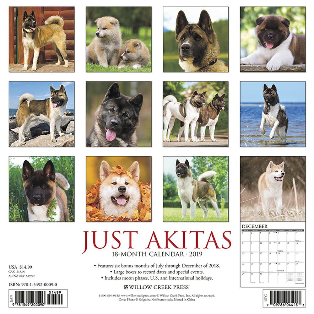| 2019年[WillowCreek]秋田犬カレンダーの画像 | |