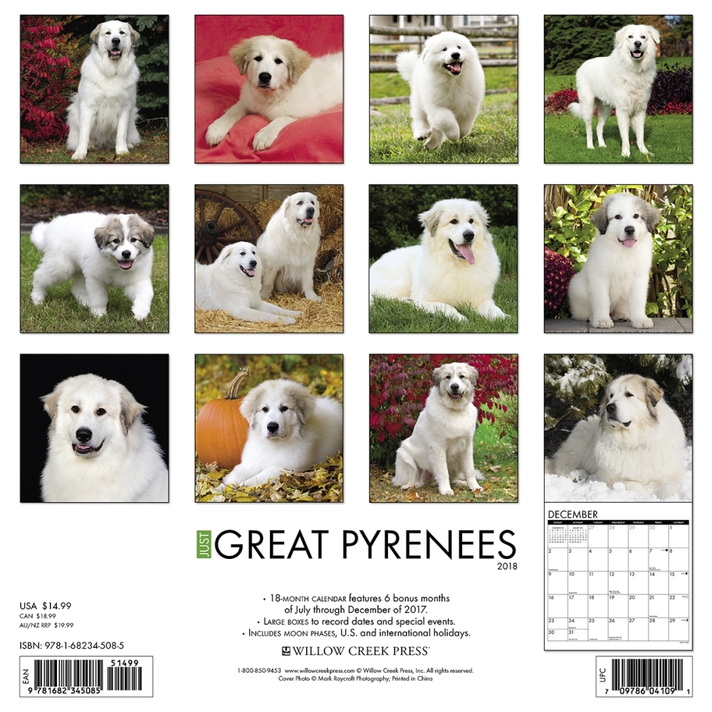 | 2018年[WillowCreek]グレートピレニーズカレンダーの画像 | |