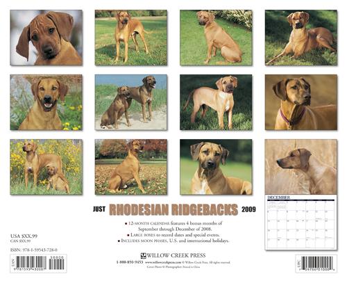 | 2009年[WillowCreek]ローデシアンリッジバックカレンダーの画像 | |