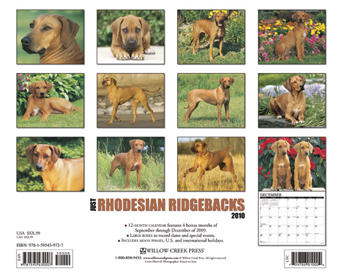 | 2010年[WillowCreek]ローデシアンリッジバックカレンダーの画像 | |