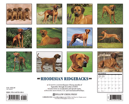 | 2011年[WillowCreek]ローデシアンリッジバックカレンダーの画像 | |
