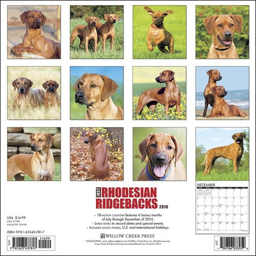 | 2016年[WillowCreek]ローデシアンリッジバックカレンダーの画像 | |