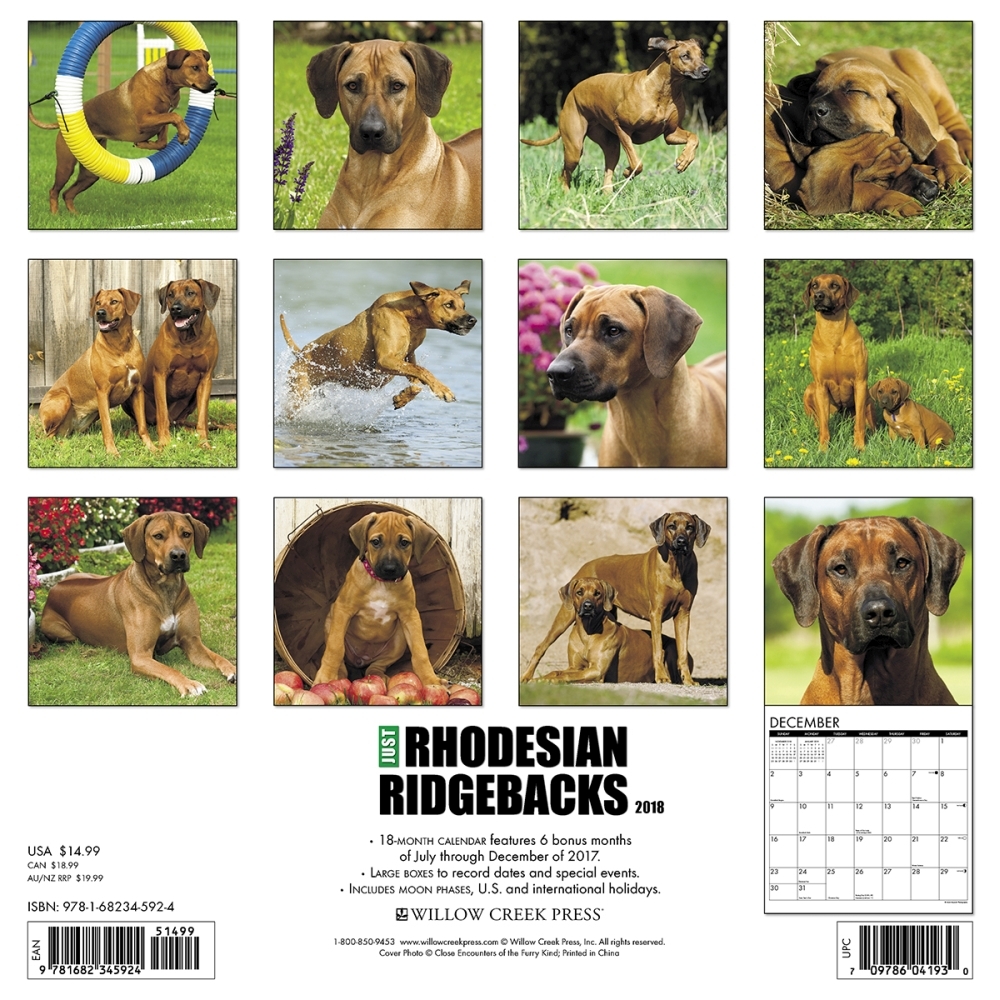 | 2018年[WillowCreek]ローデシアンリッジバックカレンダーの画像 | |