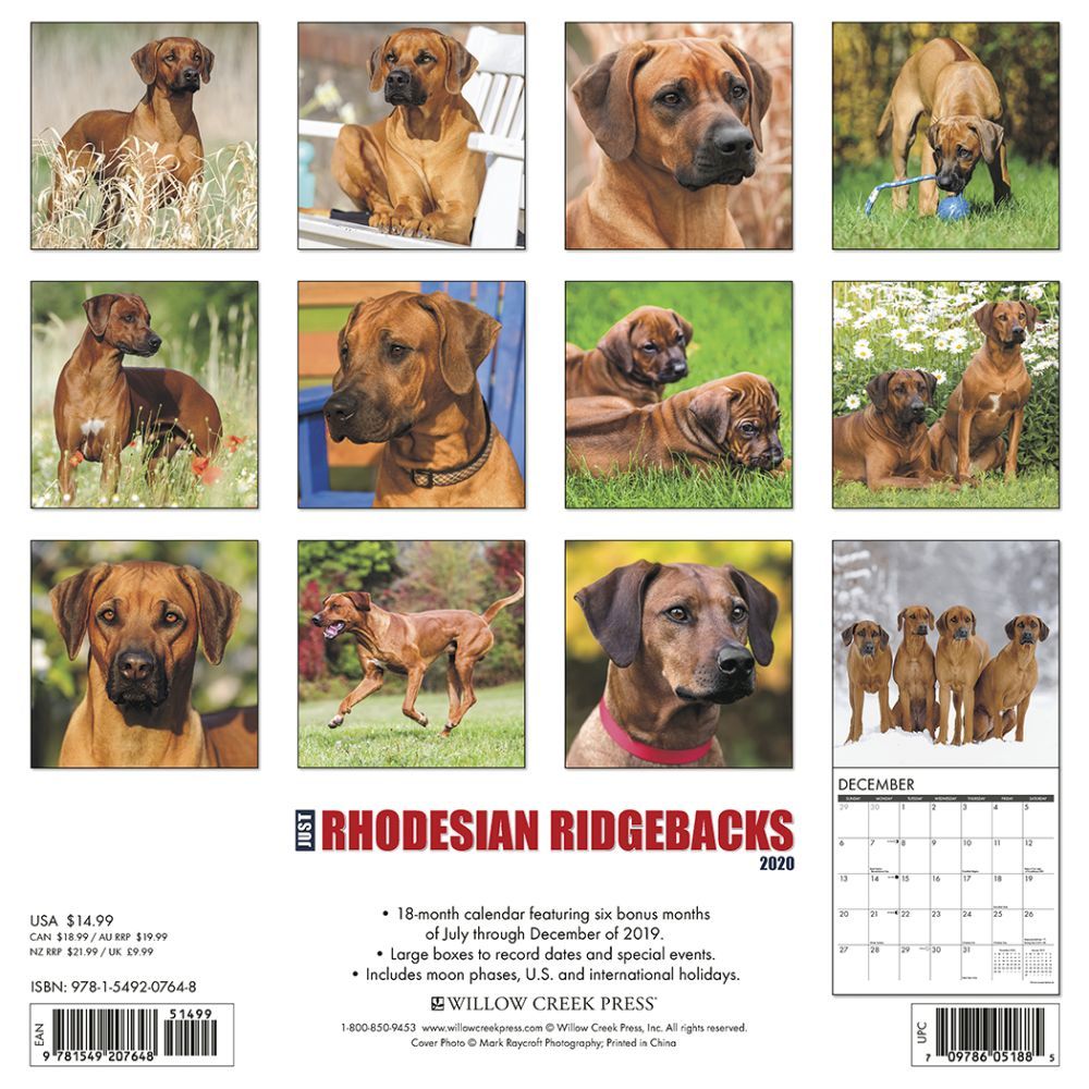 | 2020年[WillowCreek]ローデシアンリッジバックカレンダーの画像 | |