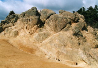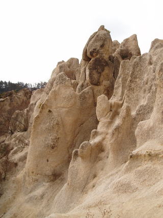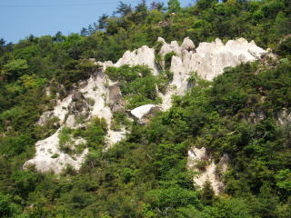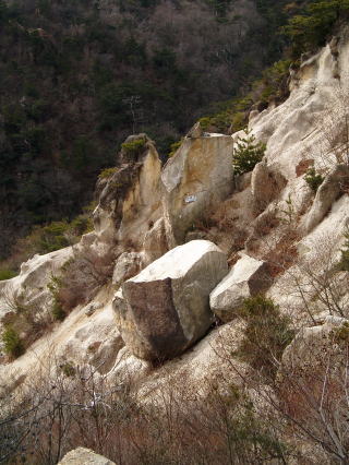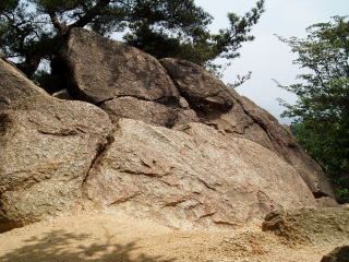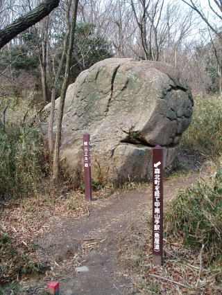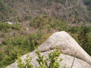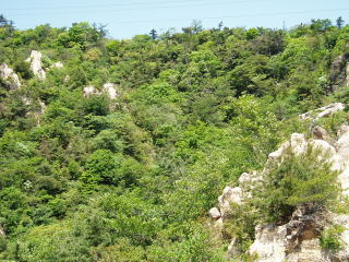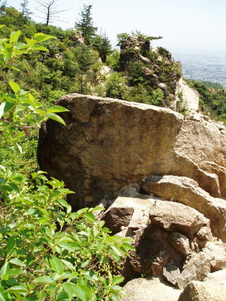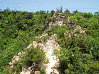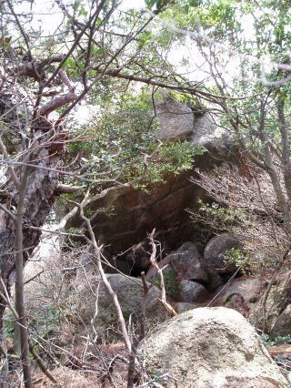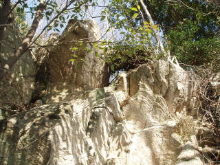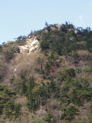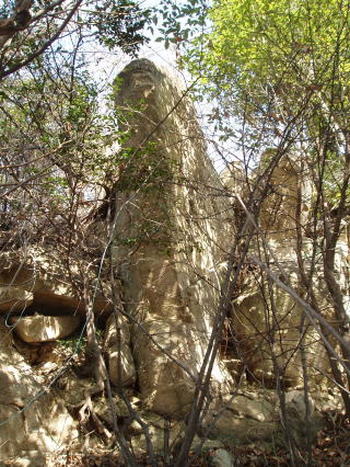 | 樹木がなければ、下の道から見える岩である。 | 左の写真の右側 | |