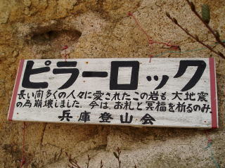 | 第二世代 ピラーロック 元祖ピラーロックが、いつ、いかなる理由で第二世代に移行したのかは不明である。(誰か、知っている人がいたら教えてください) しかし、少なくとも1984年以前にはそれなりの知名度を有していたものと思われる。 場所:芦屋ロックガーデン 墓場 |
