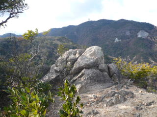 | ごろごろ岳 烏帽子岩(山伏岩) 場所:ごろごろ岳の三角点の北側の樹林の中。 観音山に向かうルートの右手。付近には、いくつかの岩が点在しているので、角度をかえてチェックすること。 |