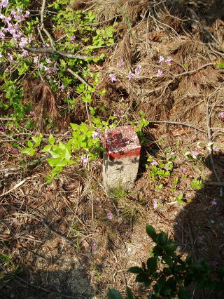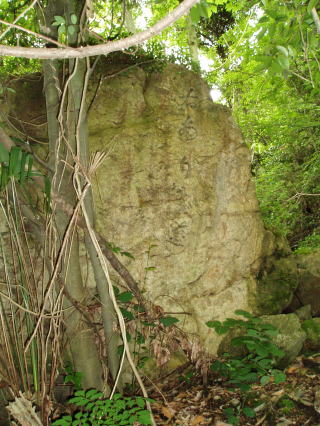 | 奥山刻印石群 (Carved Castle Stones) 2005年4月15日、私は荒地山の岩石群を東側から展望するために、ごろごろ岳の尾根道を登っていた。 その時、一人の若い白人男性が、私に地図を示し英語で問いかけてきた。 地図は六甲山の英文の登山地図で、定かな記憶ではないが、コースの西側に丸印があり、その中にCarved Castle Stonesと記されていた。 要するに、城を作るために切り出された石群であることがわかった。 しかし、私はこのコースは初めてであるし、私の持っている日本語の地図にそれが記載されていなかったため、教えることができなかった。 その後、Carved Castle Stonesとは、刻印石を指すものであることがわかった。 大坂城(大阪城)は、豊臣氏の滅亡の後、徳川氏による再建が図られた。 徳川氏は、配下の大名家に築城のための石材の切出しを命じた。 各大名家は、石に刻印を施しその所属を明示した。 この刻印石を、家紋石と称する人もいるが、刻印と家紋は本来別物である。刻印には、団子を串に刺した面白いものもある。たぶん石工の遊び心であろう。(左記の団子岩参照) それにしても、なぜ日本の地図に記載されていないものが、英文の地図に記載されているのか不思議である。 後ほど、その外人が持っている地図を入手すべく、出版社や書店に当たってみたのだが、徒労に終わった。 一般に、欧米人は、このようなものに強い関心を持つのかも知れない。とすれば、地図は外国の出版社である可能性も考えられる。 場所:ごろごろ岳に至る柿谷コースの中間の分岐点付近一帯に多数転がっている。 参考サイト 神戸背山の道 徳川大阪城東六甲採石場 四つ目の刻印を施した岩については、ハイカーの間でも話題になったらしく、「四ツ目岩」として木藤精一郎氏の本 (文献C参照)や中村勲氏の地図(文献D参照)にも登場している。 木藤精一郎氏の 『六甲北摂ハイカーの径』より 「・・・水車谷道を上つて更に一粁半餘で東大尾根の岐路に至る。・・・背上岐點には西北谷頭に、一際大きい石岩があるので、(四ッ目紋章の刻印の岩でそれが目標になる)。 此石岩を西北に下つた谷がアヤメ谷の上流で柿谷ともいつている。』(文献C参照) ここで東大尾根の岐路の位置が問題となるが国地院25000分の1地図の34.7597,135.2665地点(二つの登山路が出会う所)とするならば、右の写真の四ツ目岩 その2は、岐点からみて西北にあり、かつ八幡谷(アヤメ谷)上流を登りつめた地点にある。 四ツ目岩の位置は、国地院地図の標高475m地点の30m西(34.7602,135.2958地点)に位置する。 つまり、四ツ目岩 その2が、木藤氏の称する四ツ目岩と推定される。 これは、『芦屋市文化財調査報告 第12集』においても言及されている。(文献E参照) 「巨石を積み上げたような高さ10数mの岩山があり、その周囲に四つ目・団子の刻印が彫られているが、この岩山については既に昭和12年、木藤精一郎氏によって「四つ目岩」として紹介がなされている(『六甲北摂ハイカーの径』)。付近一帯は樹木の陰に隠れ、遠望はきかない。」 四ツ目岩 その2は、調査報告I地区No.3の刻印石に該当するものと推定される。 謝辞 『芦屋市文化財調査報告 第12集』の情報は、柴田昭彦氏より提供されたものです。 ありがとうございました。 参照サイト 「ものがたり通信」の「六甲山の話」 |