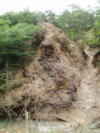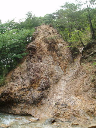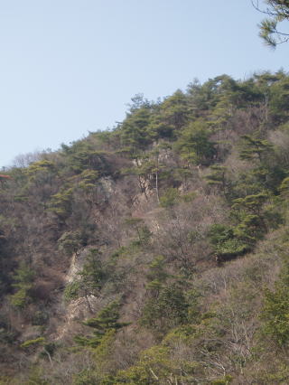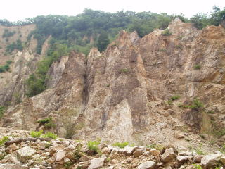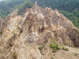 | 樹木に覆われた屏風岩 | 崩れた岸壁 | |||