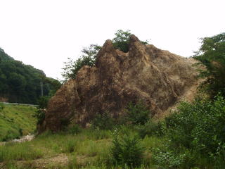 | この岩の形はまさしく烏帽子である。 | 別の角度から見た烏帽子岩。とても烏帽子とは言えない代物である。 | |||
