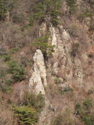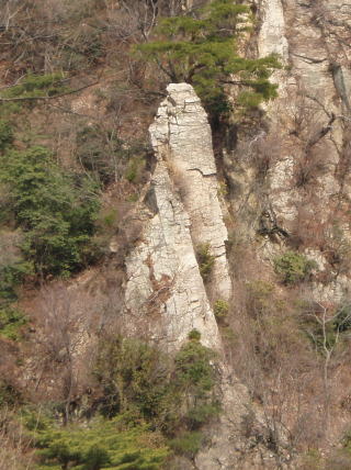 | 蓬莱峡 ニードル 関西の岩場p55掲載の地図にでてくる、ニードルと呼ばれる針のように尖った岩である。 |