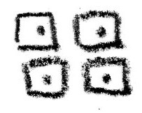 左の刻印の拡大写真 中央に黒点を有する正方形を四つ組み合わせた四つ目状の刻印で、 福井藩松平家67万石の刻印である。 (文献@A参照) 本件は、芦屋市文化財課の調査によるものです。御協力を感謝いたします。 |