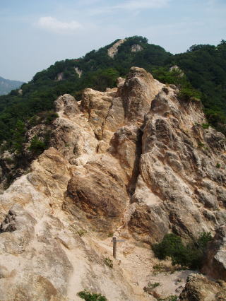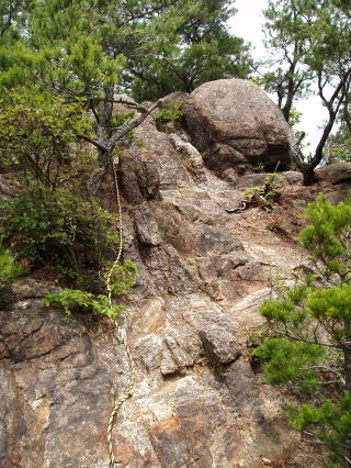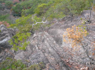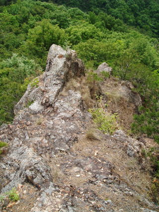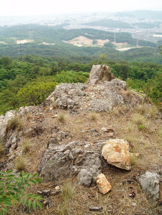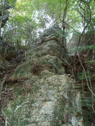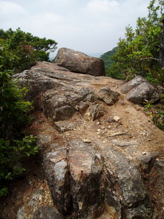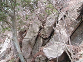 | 変哲もない岩ではあるが、ここからの眺めは良い。 | 下の方にも岩が多数崩れている。 | |||