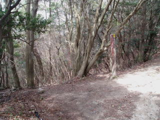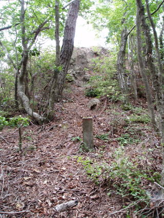| 天狗岩の手前の標柱 | 天狗岩に至るルートは右手にある。 赤テープ有 |