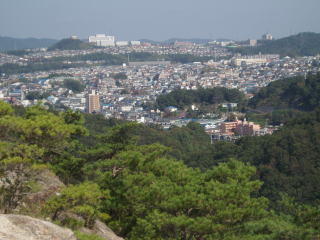 | 天狗岩の正面 | 天狗岩の上部、眺めは抜群だ。 菊水山の電波塔が見える。 |