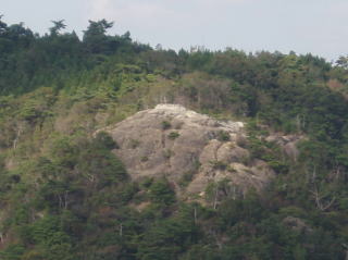 | 三笠岩全景、前部の巨岩は下段の岩 | 木々に隠れた、上段の岩。外からは見えない。 | |||