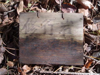 | 修行岩 | 岩の近くには修行岩(清盛の涼み岩)の表示板が落葉に埋もれていた。 | |||