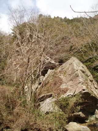| 黒岩、前部の岩は地震で崩落している。 | 黒岩全景、他にも岩が多数ある。 | |||