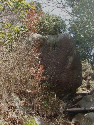 | 丸岩 市立森林植物園から神鉄谷上駅に下る道は、山田道と呼ばれる歴史街道の一部である。 古地図によると、山田道は、丸山谷で二つに別れ、右が上谷上、左が下谷上に通じていた。 そして、写真のような裏に昭和三年十一月と刻まれた道しるべが今も残されている。その近くに立つ神戸市の道標には、右の道は行き止まりと表記されているが、道は今も赤テープがあり通れそうである。 丸岩は、樹木に覆われその巨大な存在に気付く人は少ない。私も、何回となくこの場所を通過しながら、古地図を見るまでその岩に気付くことはなかった。そして、誰もが眼にするであろう道しるべも漫然と眺めていただけであった。 昔の山越えの旅人は、この道しるべから巨大な丸岩の姿を眺め、里が近いことを喜んだであろう。 丸岩は歴史の証人として、樹木の影で厳として今も存在している。 場所:山田道 丸山谷 <参考文献> 古地図『六甲ー摩耶ー再度山路図』 直木重一郎著 関西徒歩会 1934年刊 |