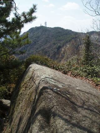 | 石楠花山 天狗岩 この岩からの眺めは素晴らしい。 暖かい日差しを浴びて、ここで弁当を食べると最高の気分になる。 この岩は、正徳二年(1712)頃出版された『和漢三才図會』(巻第74の巻頭「摂津之図」矢田部郡)に上記の烏帽子岩と並んで登場する岩と思われる。 『山田郷土誌』には次のような記述がある。 「山の麓に福浄寺という小字名があるが、これは修験道場として栄えたかなりの大寺の跡という。石楠花山に天狗岩、烏帽子岩という二つの巨岩があるのも、修験道場の名残りかもしれない」 場所:石楠花山(道標なし) 石楠花山の展望台に至る車の通れるような広い道を進んでゆくと、右手に写真のような広場がある。 その広場の右手にルートがある。 <参考文献> 『六甲』 竹中靖一著 p417 複刻版1976年刊 『山田郷土誌』第二篇 p339 1979年刊 |