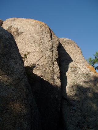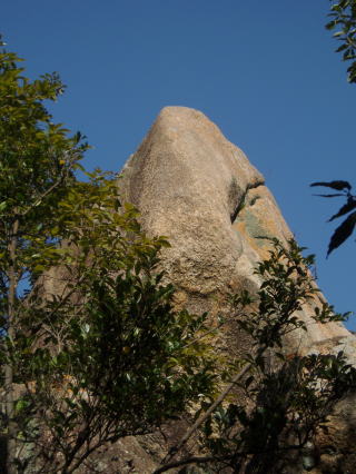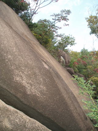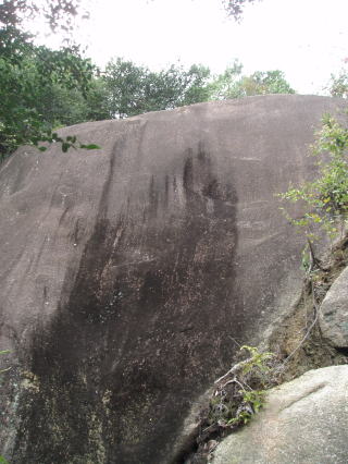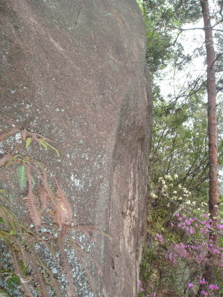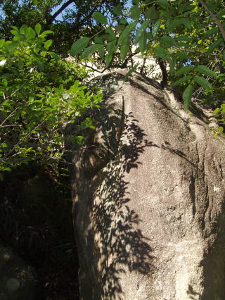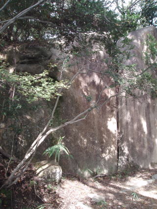 | バットマンズ フレーク この岩の頂部には古いボルトが残されていた。 「関西の岩場」 林照茂編 白山書房 1985年刊によると、この岩にも課題がある。 |