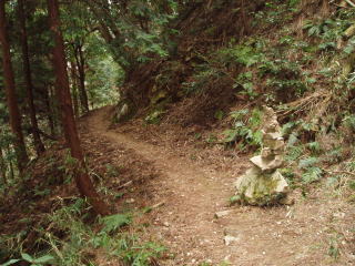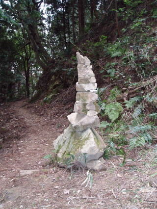 | 水平道ケルン 場所:打越山から 金鳥山に至る経路にある 森林管理歩道 起伏がほとんどないため 水平道の名で 親しまれている。 |