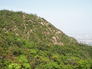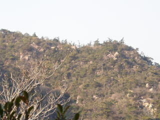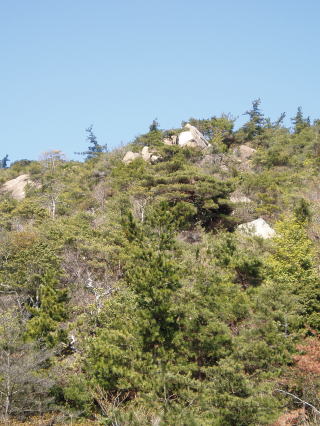 荒地山道畦谷北尾根(石のベンチ)から 見たはげ岩。写真左端の岩は岩富士。 |