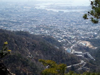 | 餅を重ねたような岩がおもしろい。 | ここは、荒地山の絶好の展望台だ。 | |
