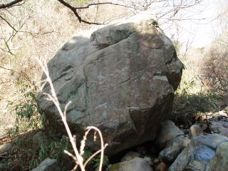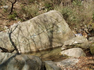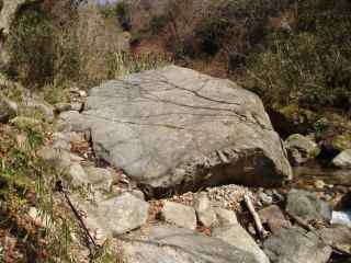 | カエル石 場所:地獄谷 小便滝下流の広場 すぐ右岸にロックフェンスがある。 |