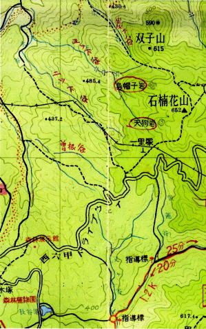 図5の中村地図から石楠花山の一里塚を通過する可能性が高いことがわかるであろう。