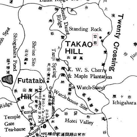 図6 高雄山(TKAO HILL)の右上に立岩(Standing Rock)の位置が印されている