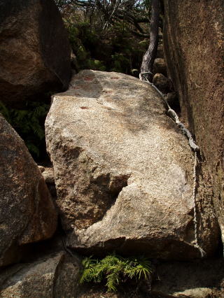 | (22) やさしい ボルダー 4m 場所:岩場梯子の上の登山路 |