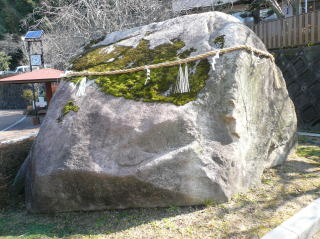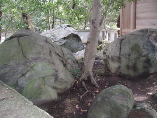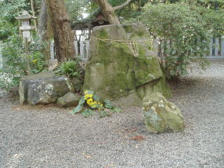 | 御社の基部、石組みが見事だ | この巨大な岩が磐座? | |