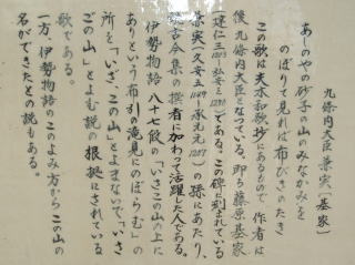 | 樹木におおわれた砂山(いさごやま) | いさご橋の袂にある歌碑の説明 | |