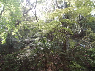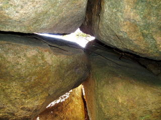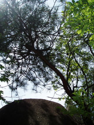 | 中央に裂け目が2m立方くらいの岩 | これが割れ目に生えた小松 | |