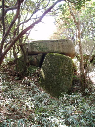 | 仰臥岩 (熊野大権現の磐座) 六甲山頂の観光化した賑わいのなかでここは取り残されたような心霊ゾーンである。熊野大権現の前部の石組みは、仰臥岩と呼ばれる磐座である。 場所:六甲山頂、六甲山人工スキー場近く Google Maps:雲ヶ岩の近傍 |