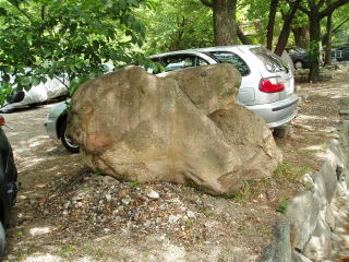 | 無事帰る。駐車場の守り神?でもある蛙岩。 道路に向いてがんばっている姿は、なんとなく頼もしい。 |