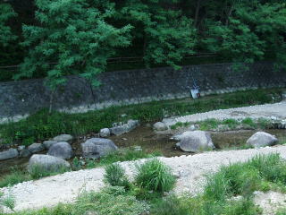 | 大土神社、この左側に六甲川が流れている。 | 六甲川のお玉杓子の群れ | |