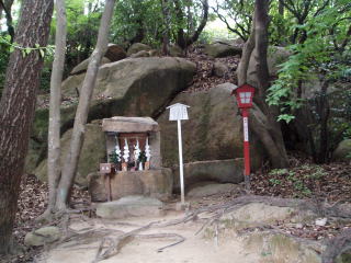 | 六甲比命大善神 弁天様をお祭りした御社で、巨大な岩石(磐座)の上にある。 場所:六甲山頂、六甲山人工スキー場近く雲ヶ岩のすぐ下 Google Maps:雲ヶ岩の近傍 |